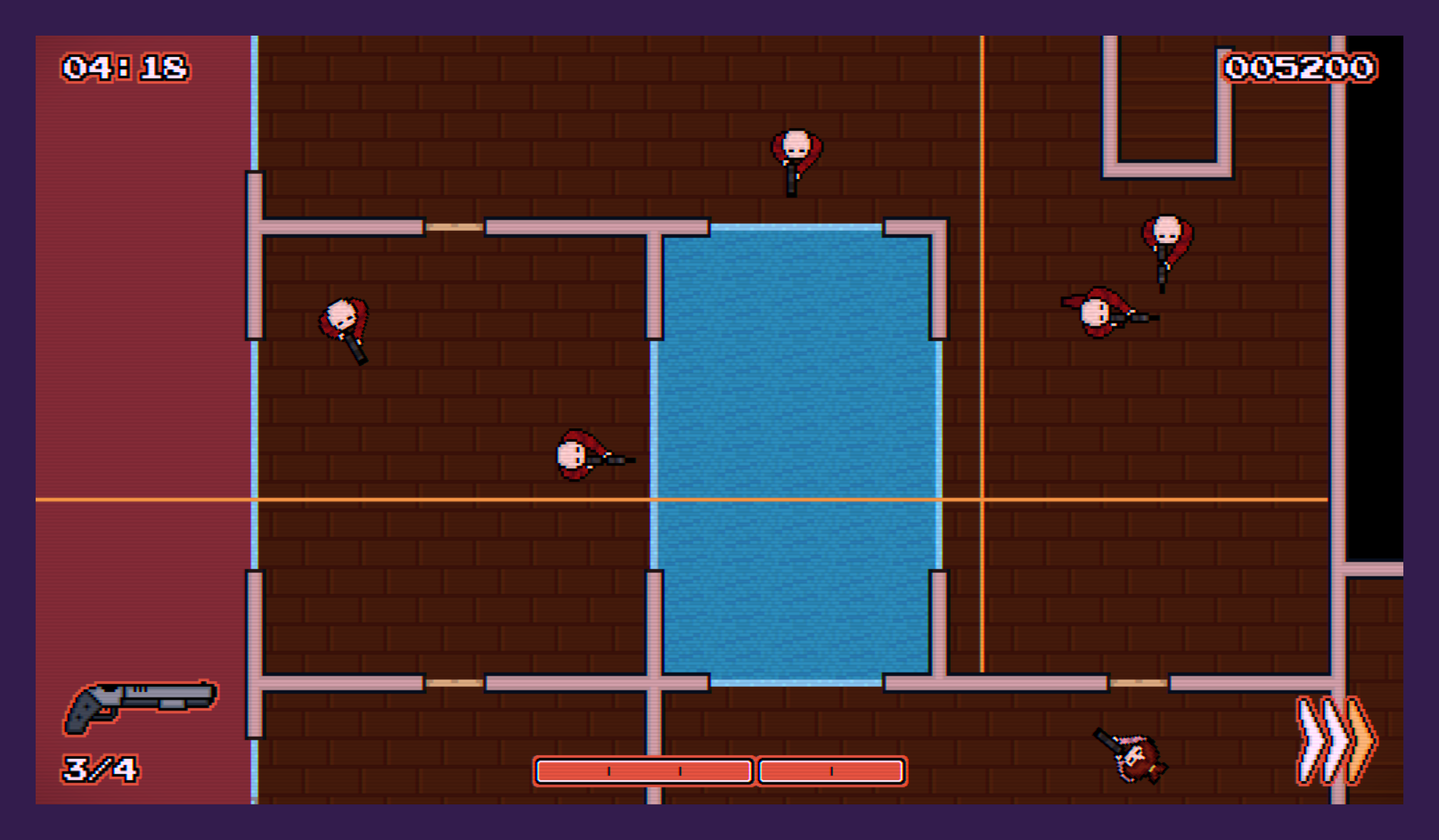 Brutal top-down action with fast-paced combat and time-slowing mechanic.